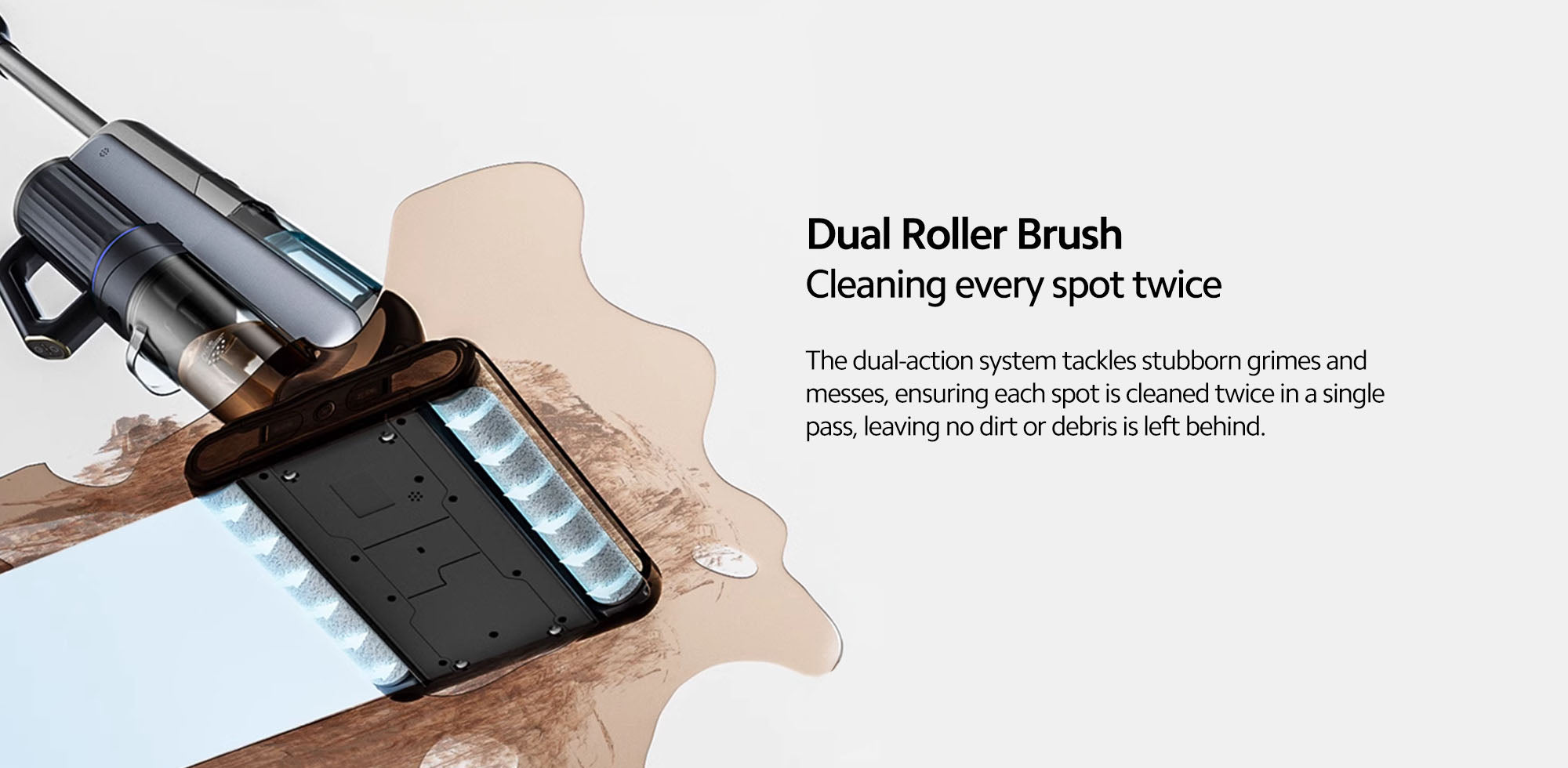 Dual Brush System – Ensures deeper clean, lifting and removing more dirt, debris, and stains for spotless results with every pass.