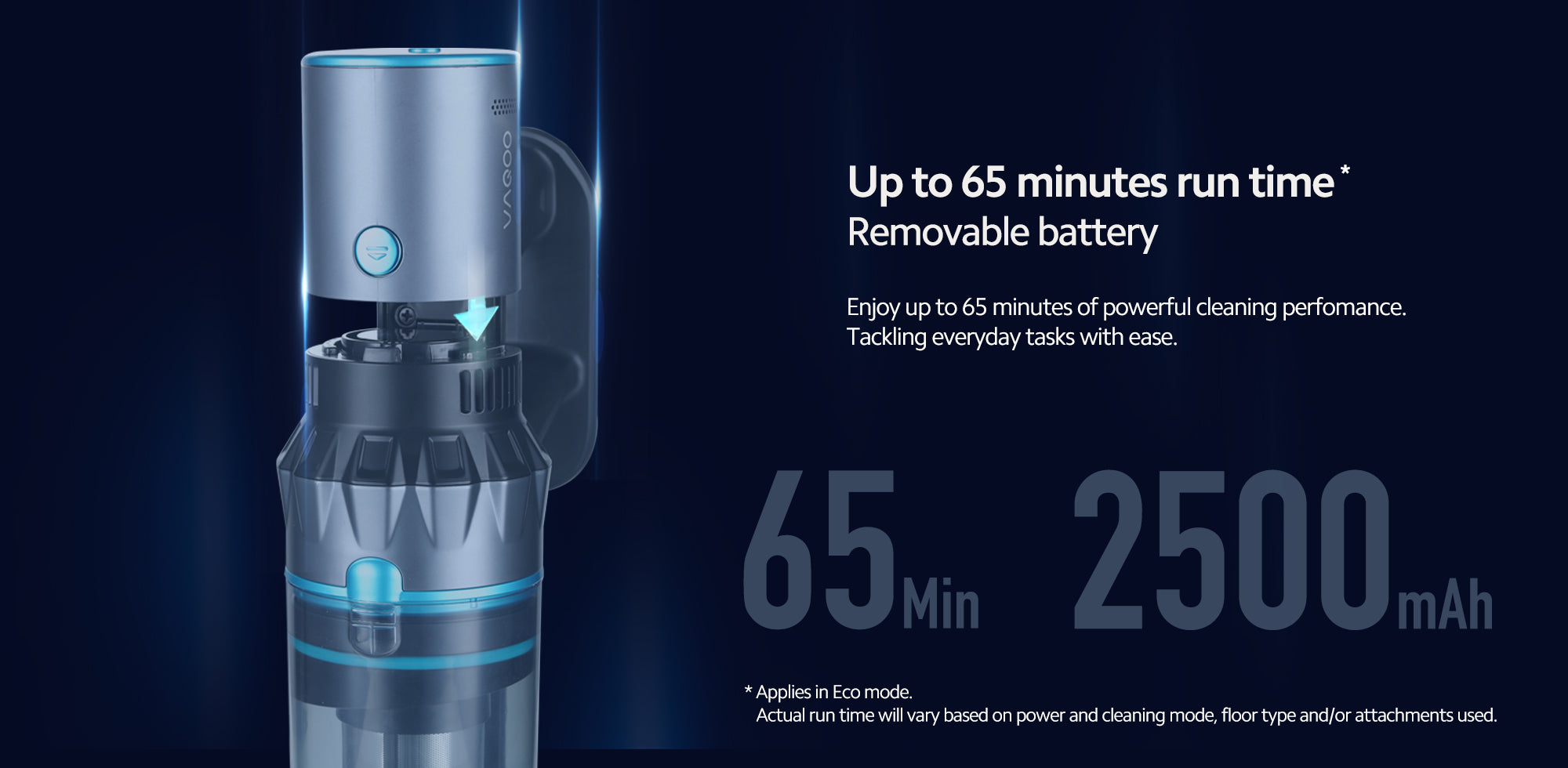 Super long Battery Life – Enjoy up to 65 minutes of uninterrupted cordless cleaning with constant and powerful suction.