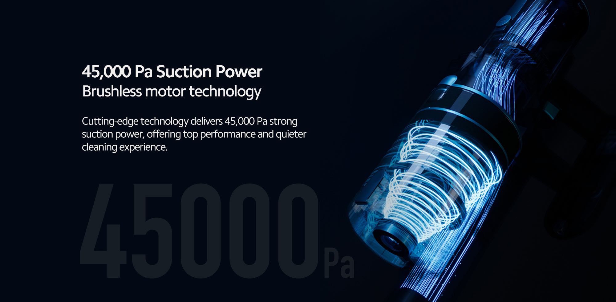 Your Ultimate Cleaning Companion with 45,000Pa suction power that effortlessly tackle dirt. Enjoy up to 65 minutes of cordless cleaning with a laser green light brush head to visibly see hidden dust particles and auto dirt detection for thorough cleaning. Lightweight and manoeuvrable for easy cleaning.