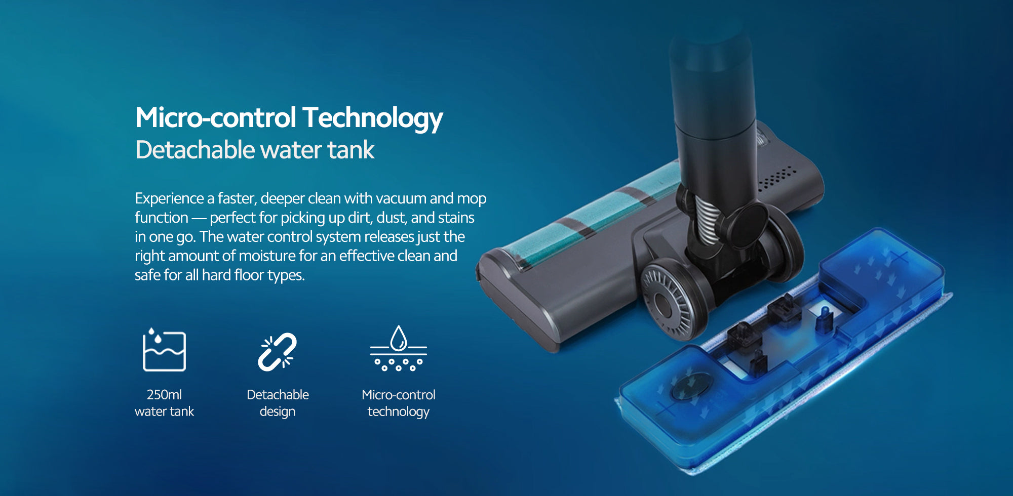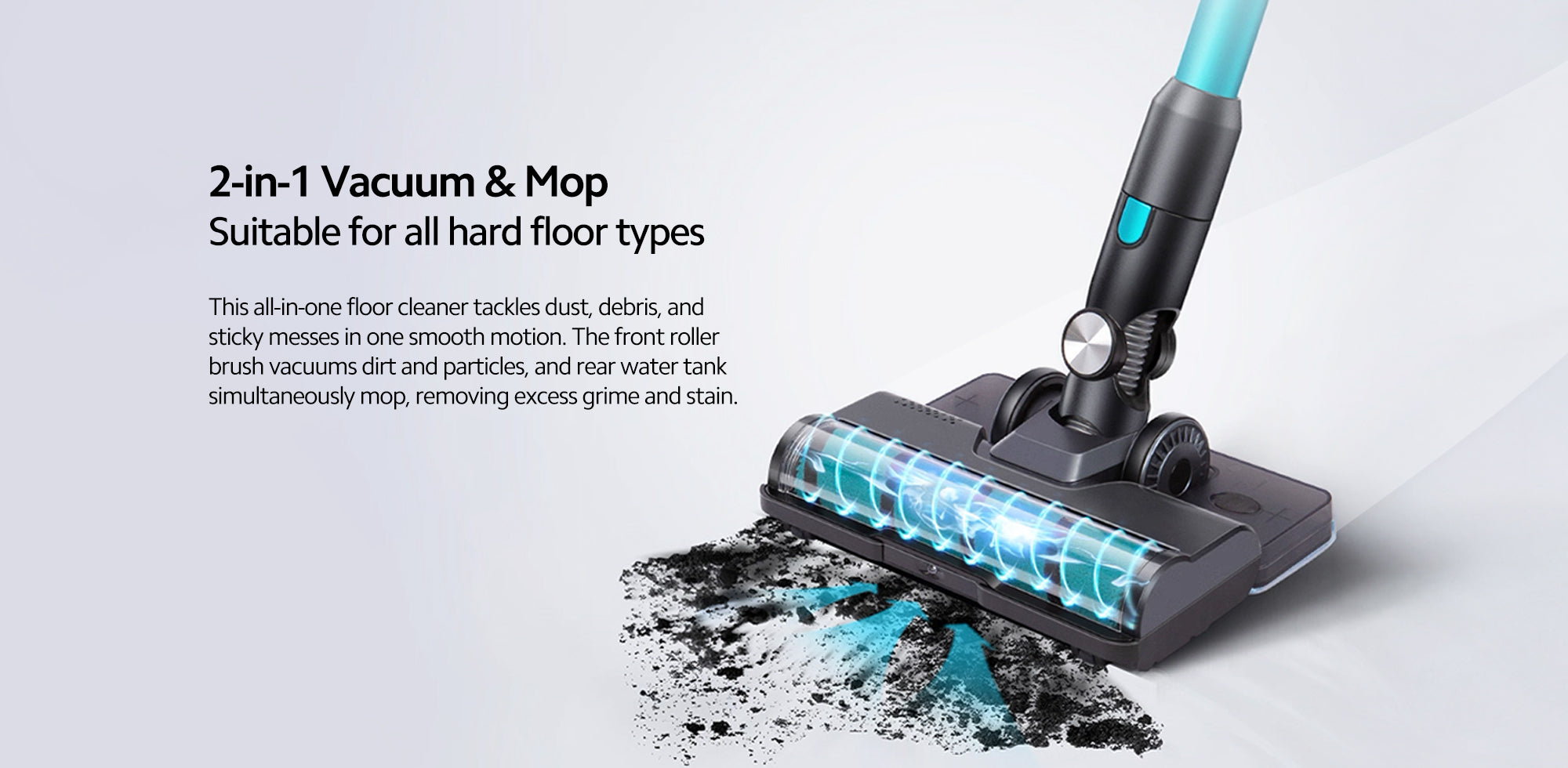 2-in-1 Vacuum & Mop – This all-in-one floor cleaner tackles dust and debris and rear water tank simultaneously mop, removing excess grime and stain.